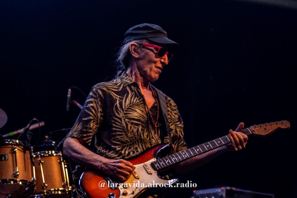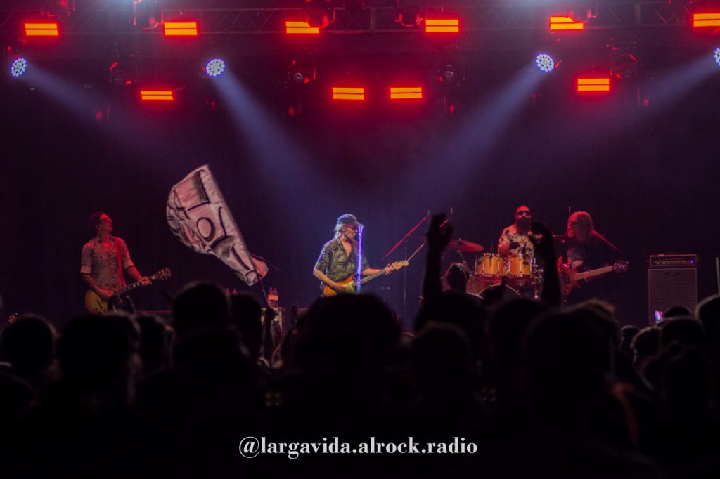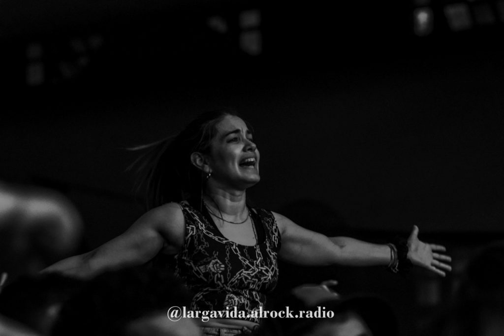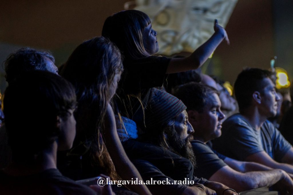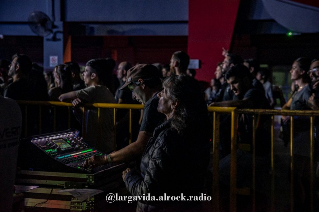 A las 22.30 la secta de los fotógrafos nos fuimos al costado del escenario a esperar que nos permitan pasar al vallado y ahí comencé a ver esa imagen que se viene repitiendo en muchos recitales fuera de las grandes ciudades: familias rockeras saltando y cantando en la previa “toca el corazón, de Patricio Rey…!!!”. Esa imagen es increíblemente hermosa, la de ver infancias acompañando a sus padres, pibes y pibas que iban a su primer recital y personas de mi generación o más grandes, que volvían a ver al Capitán después de mucho tiempo. Cuando el flaco dice “el viaje es otro show”, para mí hace referencia a todo eso, a lo que se vive previamente, a tú estado de ánimo, a la felicidad que te atraviesa el alma, a esa sonrisa que te traslada a tus primeros recitales, al compartir, al sentarse en la esquina y saludar amigos, ver una remera que me gustaría comprar, alguien que pasa ofreciendo una calco o algo para llegar a comprar una entrada, el humo de los choris, el humo dulce de algún faso, la botella que se hace jarra, el hilo que pedís por ahí, y los abrazos, ese abrazo al reencontrarte con otres peregrinos. Con eso soy rico gratis.