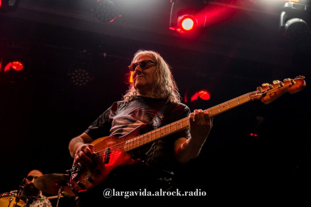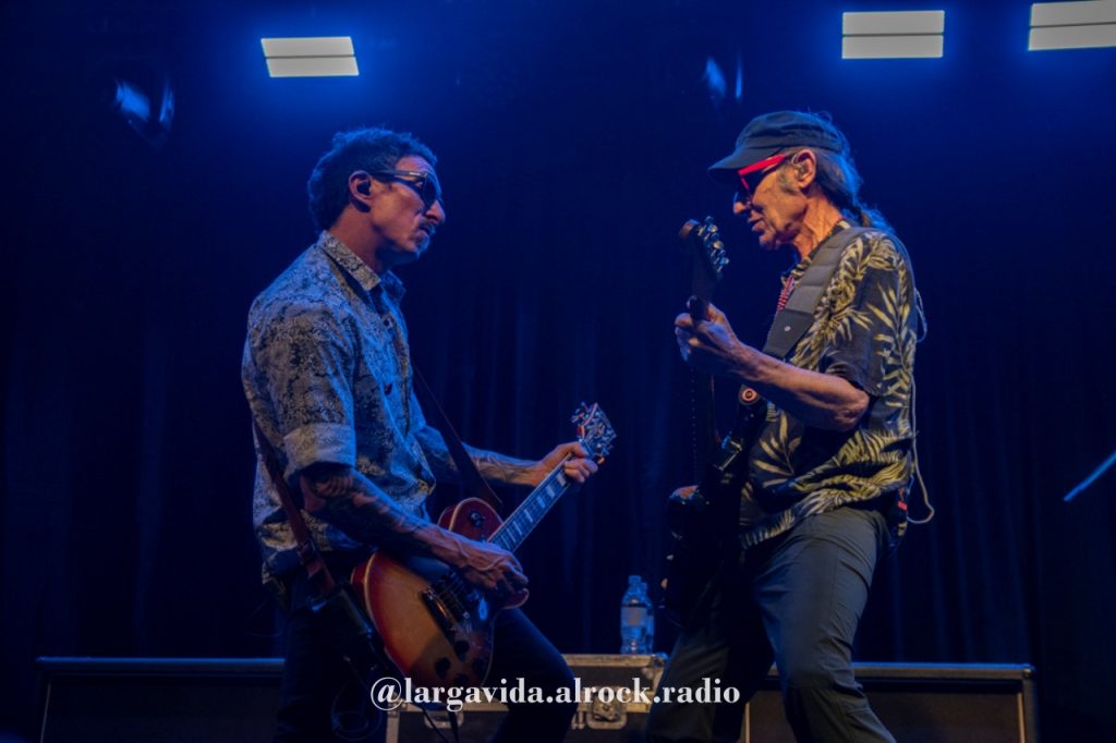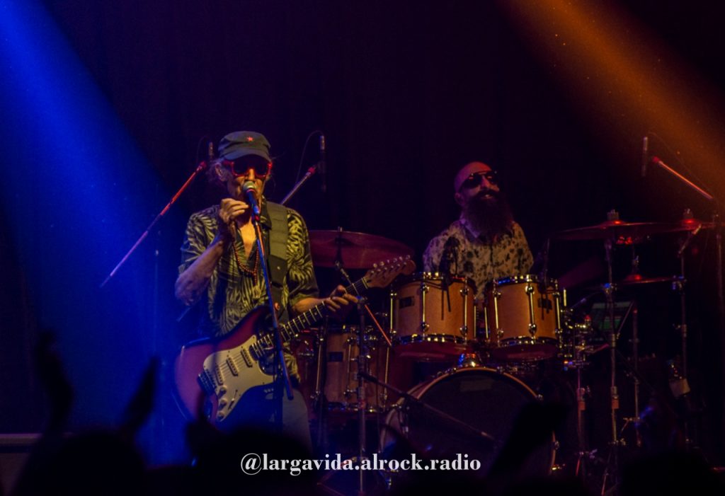 Hora cuarenta de recital, con un sonido increíble para una banda que suena muy ajustada, que juegan de memoria, que se potencian, que se los ve disfrutando en el escenario y esa energía se contagia a los que estamos abajo, y reímos, y lloramos, y nos abrazamos, y somos uno con la banda, que nos lleva en un viaje sonoro fantástico. El diálogo de cuerdas que hace Joaquín con el Flaco es increíble, y esa base de Claudio y Leandro es el “late corazón, late”, es como que por momento son niños jugando en el escenario y uno no deja de admirar la amorosa entrega de Skay hacia un público respetado.