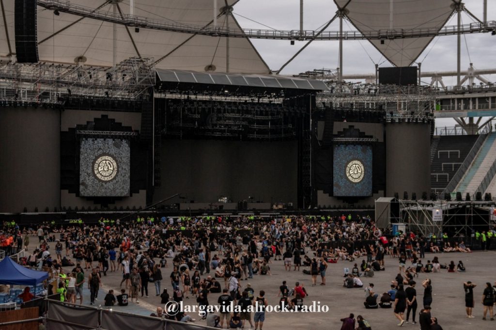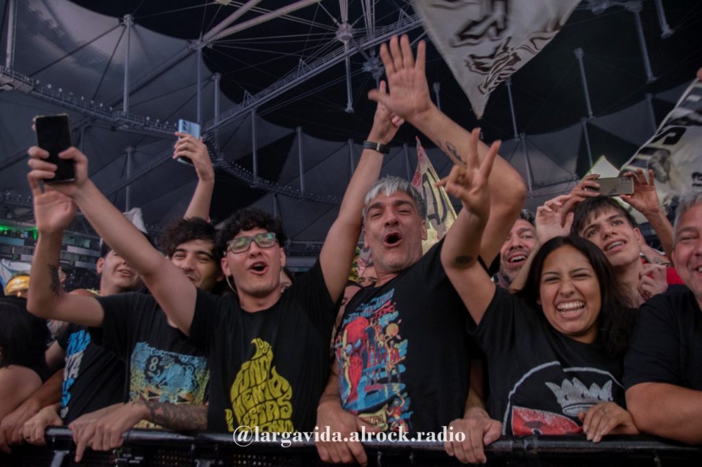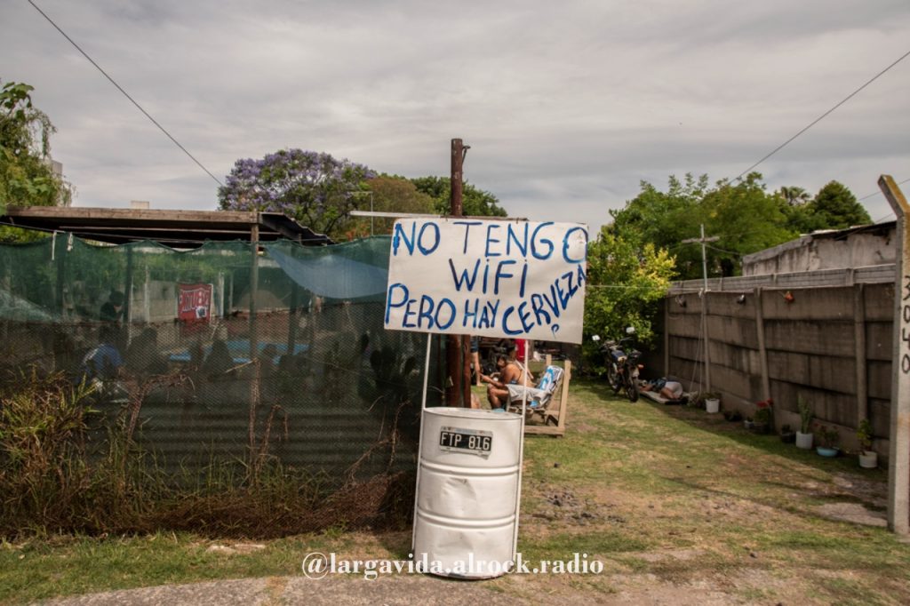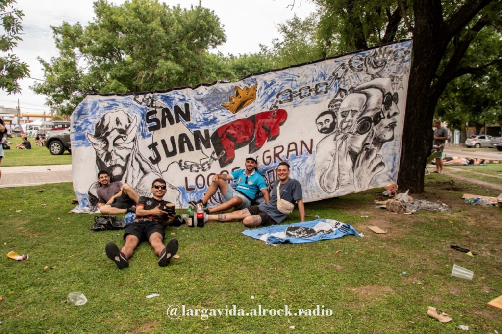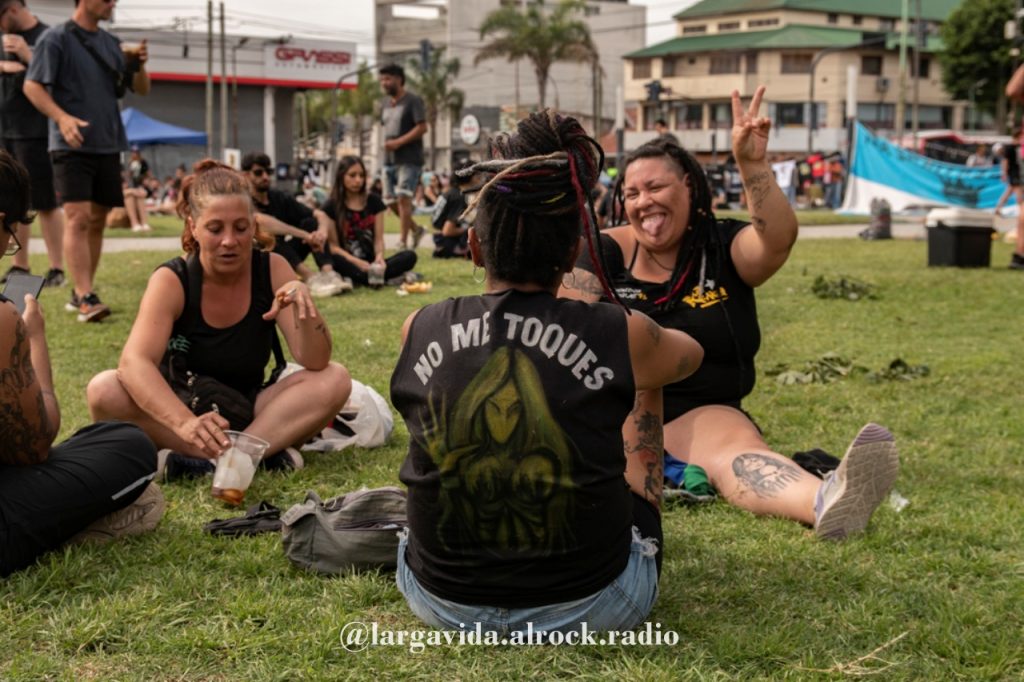 Salgo a caminar un rato, me encuentro con la Pau, la profe de poncio pilates, sonrisa de oreja a oreja, con su trapo y contando lo que vivió el sábado y de la lista de temas que llevó como trofeo. Lo veo al Alex en su puesto de comida, otro personaje buenaso que el rock me acercó, y la avenida 25 que va tomando color y olor. Vuelvo a la casa de Miguel, me hidrato mientras saludo al Javi, al Samu, el César y más personajes que solamente en el mundo del rock vas a poder encontrar. Coordinamos con el Gustavo puntos de encuentro y me voy para 32 y 20 a buscar el precinto que vamos a tener la secta de les fotógrafes. Para que se ubiquen, un cuadra de 6 o 7 cuadras, nosotros estábamos en un vértice y tenía que ir al vértice opuesto, y luego volver porque teníamos que ingresar por 25 y 526.