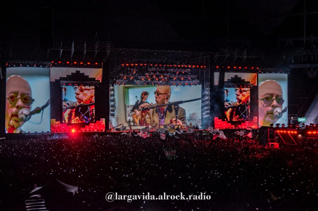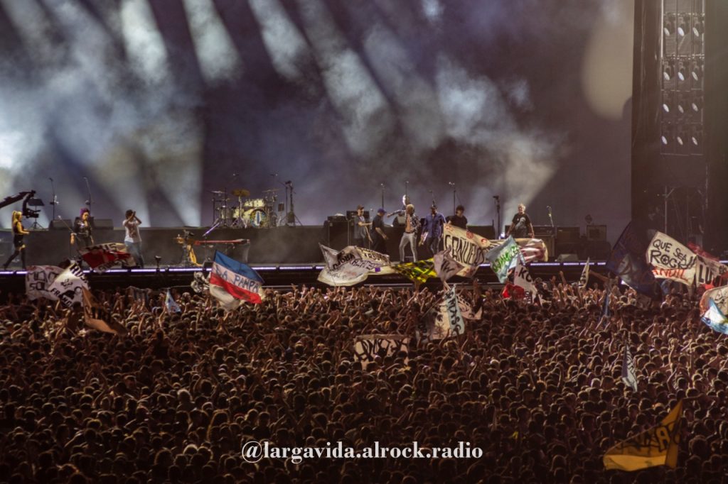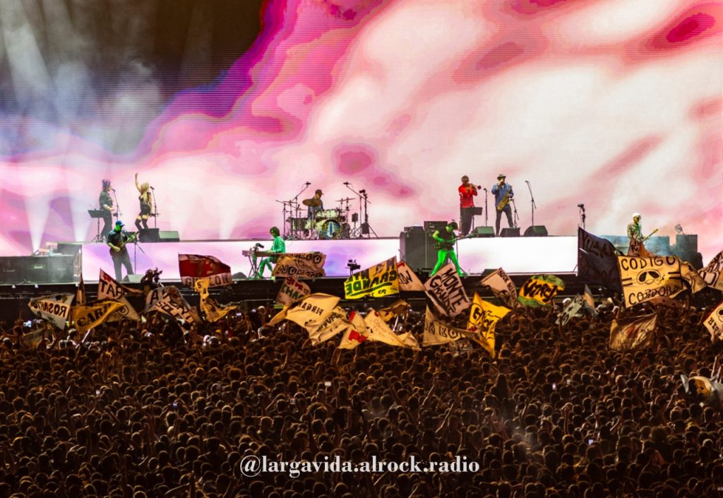 Tres horas de recital, un sonido cri-mi-nal en manos del Andy Carbonel, la escenografía y luces en un nivel increíble, con unas pantallas curvas en los laterales, como torres, que jugaban con lo tridimensional. Cada recital de LFDAA tiene un trabajo de escenografía y luces para que toda la banda pueda lucirse, que se destaquen en determinados momentos, provocando un estímulo visual que habilita un disfrute mayor en cada canción. Es necesario comenzar a señalar y nombrar, si tenemos la data, de esos equipos de laburo que están en los detalles para que la banda suene de la mejor forma posible. Y acá fue un trabajo zarpado.