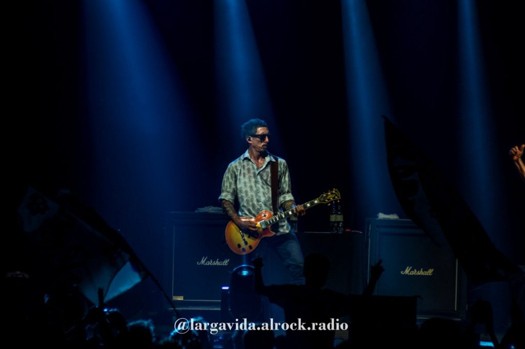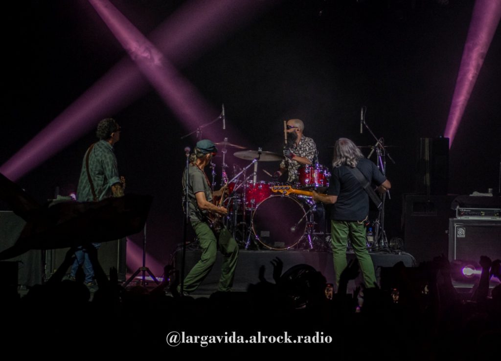 Muy buena iluminación y un sonido a la altura del artista, algo que necesitamos comenzar a destacar porque hay un trabajo detrás de la banda que muchas veces pasa como invisible, y son esos detalles que potencian lo que ocurre en el escenario, y que hacen que los músicos también disfruten. Y eso se vió en la sonrisa del Flaco, verlo disfrutar del recital, y transmitir eso en cada acorde, con una banda que suena muy pero muy bien: una gran base de Leandro y Carlos, ajustados, sólida, que permiten que Joaquín y el Flaco jueguen con sus cuerdas, dialoguen entre las guitarras y nos hagan delirar.