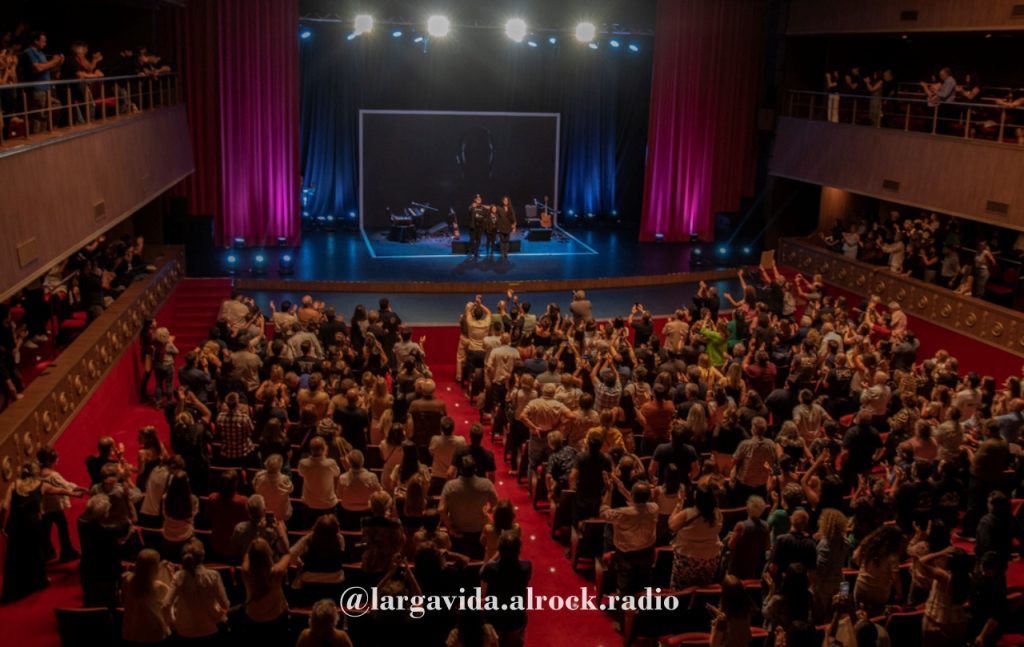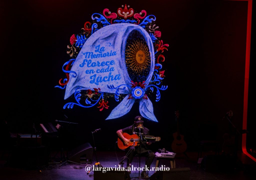 El Teatro es hermoso y comienza a colmarse con personas de todas las edades y remeras con el rostro de León, pañuelos de Madres y Abuelas, bandas de rock. Se respira militancia, se respira lucha y amor.